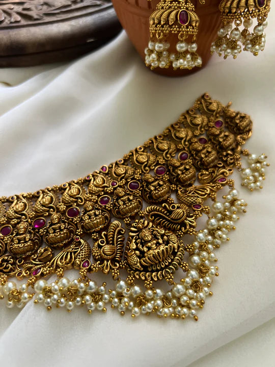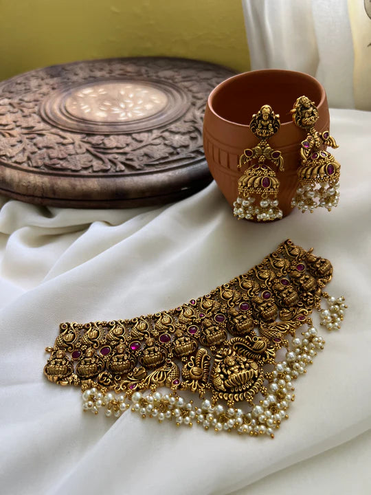 Antique lakshmi kemp choker with jhumkas