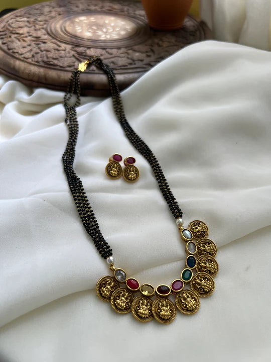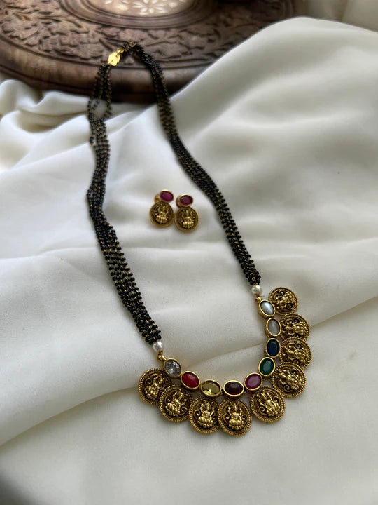 Antique Lakshmi navratna mangalsutra and studs