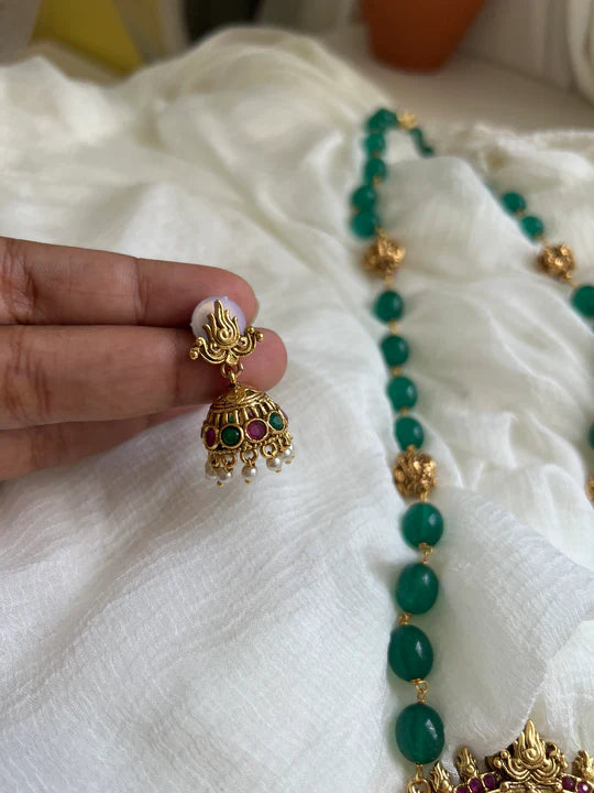 Nataraja emerald Nagas bead maala with tiny jhumkas